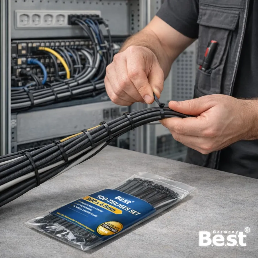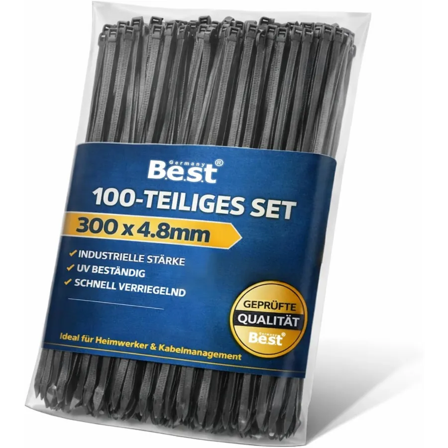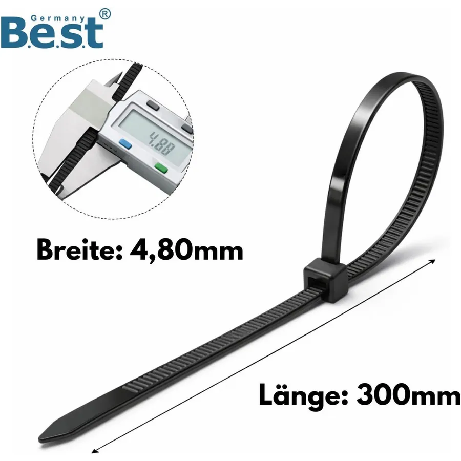 Kabelbinder Schwarz - 4,8 x 300 mm – Reißfest, Belastbar & Robust